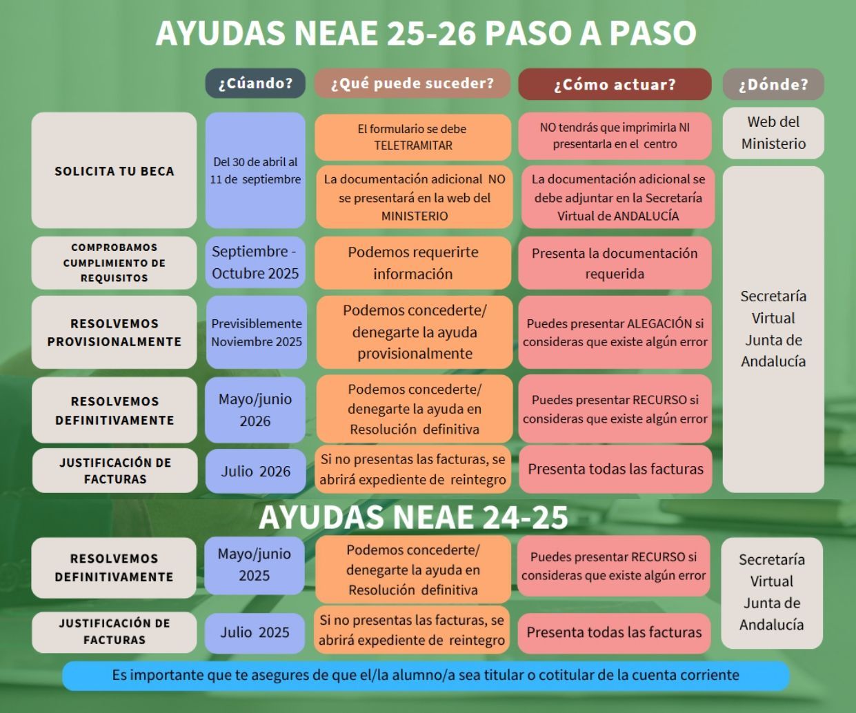 El pasado 25 de abril de 2025 se publicó en el BOE el extracto de la Resolución de la Secretaría de Estado de Educación por la que se convocan las Ayudas para Alumnado con Necesidad Específica de Apoyo Educativo (NEAE) correspondientes al curso académico 2025-2026.