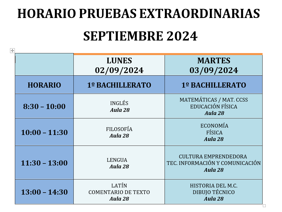 EXÁMENES EXTRAORDINARIOSJUNIO 20214º ESO y 2º BACHILLERATO